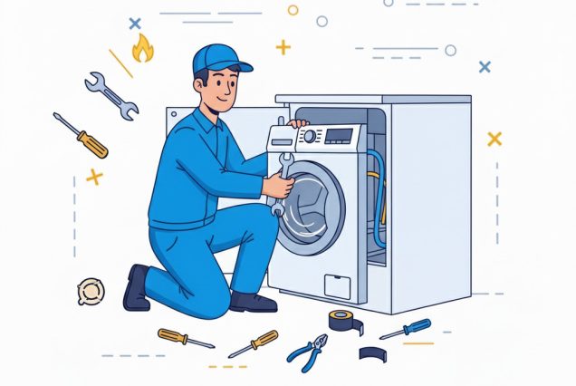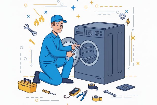 Drobne i średnie usterki, np. problemy z odpływem, grzałką, uszczelkami, blokadą drzwi.